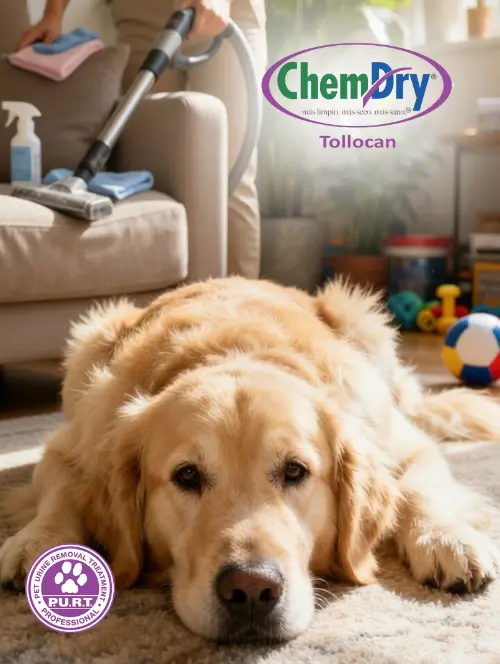 Método ChemDry con soluciones patentadas, secado rápido y eliminación de olores y manchas causadas por mascotas, con total seguridad para tu familia, perros, gatos y muebles.